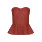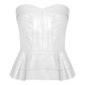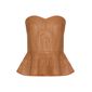 Blusa em couro legítimo, sem alças com recortes em toda a peça. Fechamento com zíper e elástico nas costas. Escolha a sua cor favorita, em caso de combinações bicolores colocar no campo de observação ou comprar via WhatsApp.