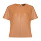 Blusa em couro legítimo, modelagem ajustada e comprimento mais curto. O Cropped Tshirt é uma peça atemporal e básica, do tipo que você vai querer ter em todas as cores. O comprimento sobre o umbigo e fica acima do cós, a modelagem é mais ajustada.
